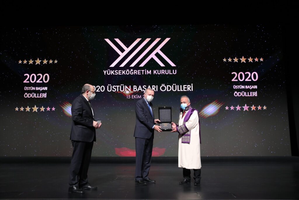 Törende YÖK tarafından her yıl bireysel ve kurumsal olmak üzere iki kategoride dağıtılan YÖK 2020 Üstün Başarı Ödülleri, akademisyenlere ve yükseköğretim kurumlarına Cumhurbaşkanı Erdoğan tarafından verildi.